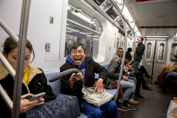 AnimalNewYork: An old man wearing a full New York Knicks sweatsuit was terrorizing straphangers on the subway with a gigantic dildo last weekend. Here’s the story, according to ANIMAL’s Aymann Ismail, who witnessed this around 9 PM on Saturday night aboard a Flatbush Avenue-bound 2 train: An older man of indeterminate ethnic origin boarded the train at Atlantic Avenue; the man seemed “fucked up on some kind of drug,” loose-limbed and sloppy. Some young men sitting next to him began making fun of him. One of the dudes took out his phone to snap a selfie with the older guy. At that point, the old man reached into his bag and pulled out a massive dildo. An anonymous sex toy industry expert ANIMAL consulted estimated that it was between 14-16″ long.