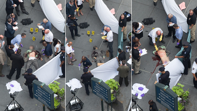 Gawker: A freelance photographer working for the New York Post on an unrelated assignment happened to be standing on the 49th Street station platform when 58-year-old Queens resident Ki Suk Han was suddenly pushed onto the tracks by an as-yet-unidentified assailant. The photographer, R. Umar Abbasi, snapped at least two photos of Han before he was run over by the downtown Q train. The married father-of-one sustained critical injuries and was later pronounced dead at Roosevelt Hospital. One of the haunting photos Abbasi took graces the front page of the Post this morning, incurring the ire of readers who want to know why no help was extended to the injured Han in lieu of capturing the moment for posterity. Abbasi claims that he was using his camera’s flash to warn the train’s conductor, possibly suggesting that the photos were incidental. The Post further defends Abbasi, saying he wasn’t strong enough to lift Han off the tracks.