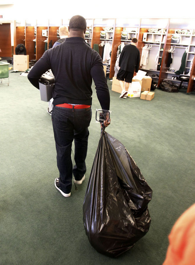 FLORHAM PARK, N.J. — A day after watching his dysfunctional team implode, and after meeting individually with several players Monday, Rex Ryan offered a stunning mea culpa for someone who prides himself on being a player’s coach. “Normally, I’m a guy that really has the pulse of this team, and I don’t think I had the pulse of the team the way I’ve done in the past,” Ryan said at a news conference. “When I met with players, I think that became clear to me.”  Only a few hours earlier, the New York Jets’ coach became so emotional in a team meeting that he cried while addressing the importance of unity, according to players. It was a surreal day for the Jets, who cleaned out their lockers and admitted, almost to a man, their Super Bowl aspirations were undermined by poor team chemistry. The lowpoint occurred Sunday in Miami, where Santonio Holmes was benched for the final two minutes after jawing with teammates who felt he had quit. Several players, speaking on the condition of anonymity, said Holmes poisoned the locker room throughout the season. Ryan backed offensive coordinator Brian Schottenheimer’s decision to bench Holmes, but he acknowledged there was ongoing turmoil and he vowed to restore harmony to the locker room. Ryan admitted he made a “huge mistake” by naming six captains before the season — Holmes was one of them — because he believes it detracted from the team concept. He said there will be no captains in the future. “It’s not a reflection of anybody in particular, but we’re not going to have those anymore,” said Ryan, who was criticized for the decision to give a ‘C’ to Holmes. Ryan said he expects Holmes to return in 2012. He signed a five-year, $45 million contract before the season. The Jets (8-8) fell well short of their expectations, missing the playoffs for the first time in three years. There was a lack of harmony on offense, and it came to surface in October when Holmes called out the offensive line, sparking a war of words with guard Brandon Moore. Just last week, Holmes clashed with quarterback Mark Sanchez in a meeting room, team sources told ESPNNewYork.com. It got really ugly in Miami, when Holmes had to be restrained from going after tackle Wayne Hunter in the huddle. “For whatever reason, I don’t think we were as close as a football team as we were the first two years, and now we’re sitting on the outside looking in,” said Ryan, who is 28-20 in three seasons. “We’re watching the other teams in playoff games, and we think we should be in. I think that’s painful. Beyond belief, that’s painful.” That pain poured out of Ryan in the team meeting. He didn’t mention Holmes by name, according to players, but he made it clear he was talking about the mercurial wide receiver when he discussed the importance of leadership and supporting teammates and playing through injuries. “He started off calm … and he got really emotional, and kind of put his heart out there, pleading with us, saying, ‘We have to do a better job, we have to be a team if we’re going to win,'” guard Matt Slauson said. “Yeah, he was crying, because he loves us,” Slauson added. “He knows what we’re capable of, and we didn’t even come close to our goals and that was sad because we have the players in this room to be an amazing team. We weren’t even close. He was really disappointed with that.” Ryan confirmed that he choked up in the meeting. “I’m Irish, so what do you want?” he said. “It’s hurtful, and I’m extremely prideful. I want to be the best. I want to win. Sometimes it comes out like that.” But it wasn’t just a Kleenex moment; Ryan also lashed into the team. “It was a little bit harsher than most end-of-the-year meetings,” Moore said. “Everything was spot on. Everybody is frustrated and disappointed.” Ryan wouldn’’t say which players he met with, and he wouldn’’t say if he met with Holmes. General manager Mike Tannenbaum, who appeared with Ryan at the news conference — a likely show of unity — said he met with more than a dozen players Monday in attempt to uncover answers. “Clearly, there are a lot of things we all could’ve done better,” said Tannenbaum, also refusing to say if he met with Holmes. Holmes refused to speak with reporters. He walked to his locker, grabbed a cardboard box and exited quickly, escorted by a PR official while at least 30 reporters followed in their wake. One player watched the scene unfold, shook his head and said, “What a joke.” Several players dodged reporters. Some appeared shaken as they entered the locker room. Darrelle Revis, one of the most media-friendly players on team, bolted immediately. Bart Scott gave an obscene gesture to a photographer and snapped, “Get that f——- thing out of my face.” The players that stuck around spoke openly about the internal strife that fractured the locker room. “We talked all year how talented we were,” Jim Leonhard said. “It’s not talent. It’s obviously all the intangibles and things like that. I’m not going to point out one guy; it was a lot of different issues. Obviously, things need to change — and will.” The Jets mortgaged character for talent, jettisoning well-respected veterans such as Jerricho Cotchery and Damien Woody and bringing in Derrick Mason (since traded) and Plaxico Burress to join Holmes in the receiving corps. Burress didn’t cause any friction, according to team sources, but they suspect it was because he was on a one-year contract. “There are a lot of reasons why we didn’t have the season we wanted, and chemistry can go on the list for however many numbers go down the page,” Moore said. Now the healing process begins. “We’ve got to find a way — and I will find a way — of pulling this team together,” Ryan said. “That’s something I always think is a strength of mine.” Not this season.